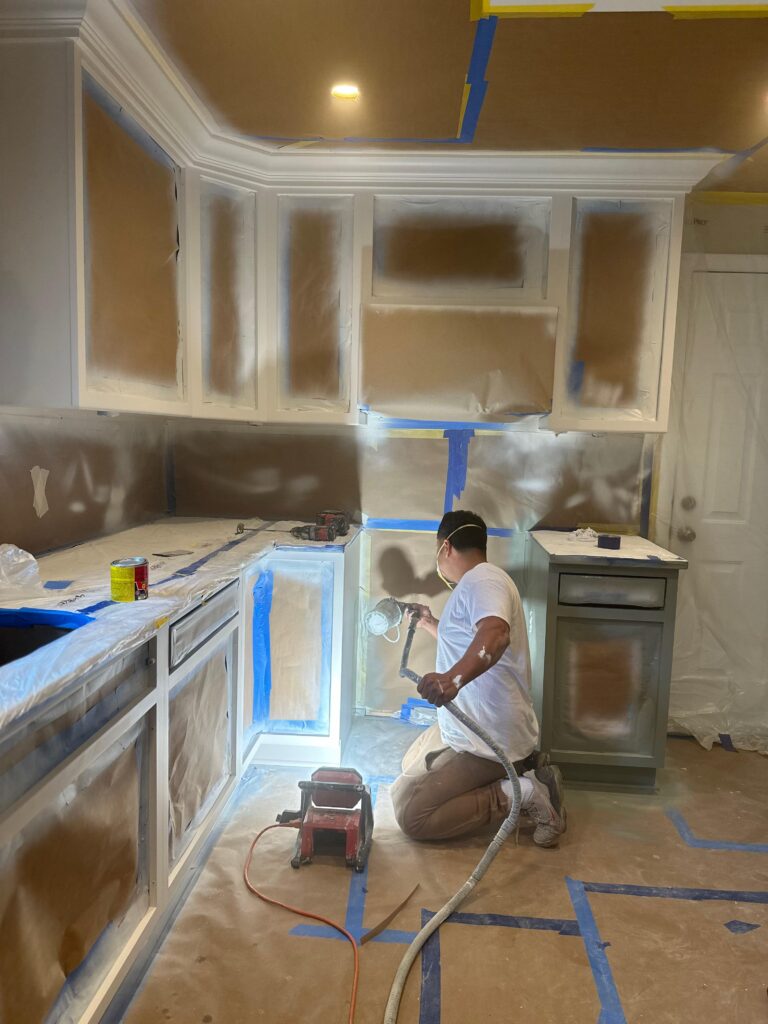 Interior and exterior painting, cabinet refinishing, wallpaper installation, popcorn ceiling removal, carpentry, and pressure washing.